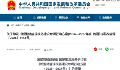 聚焦算力设施场景应用 发改委、能源局印发《新型储能规模化建设专项行动方案(2025—2027年)》